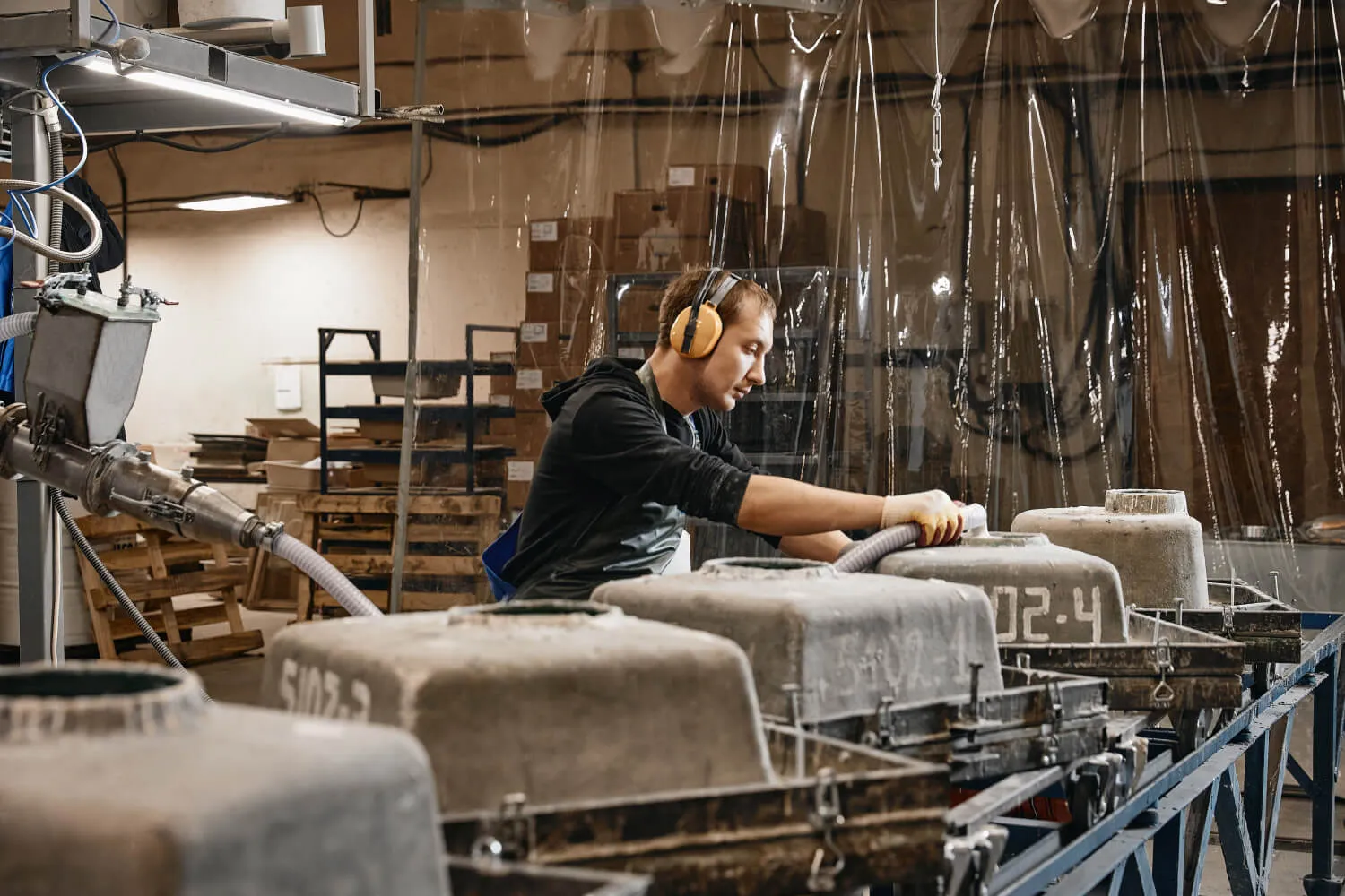 После полимеризации изделия отправляются в цех механической обработки. После фрезеровки кромки и сверления технологических отверстий, изделия поступают на участок комплектации и упаковки.